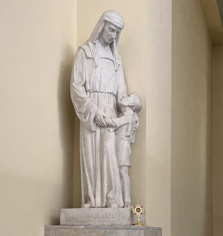 Interiér nově zdobily tři mramorové oltáře, kazatelna se symboly evangelistů a socha sv. Luisy de Marillac. Mramor pokrýval i podlahu a stěny. Vyměněny byly i lavice.